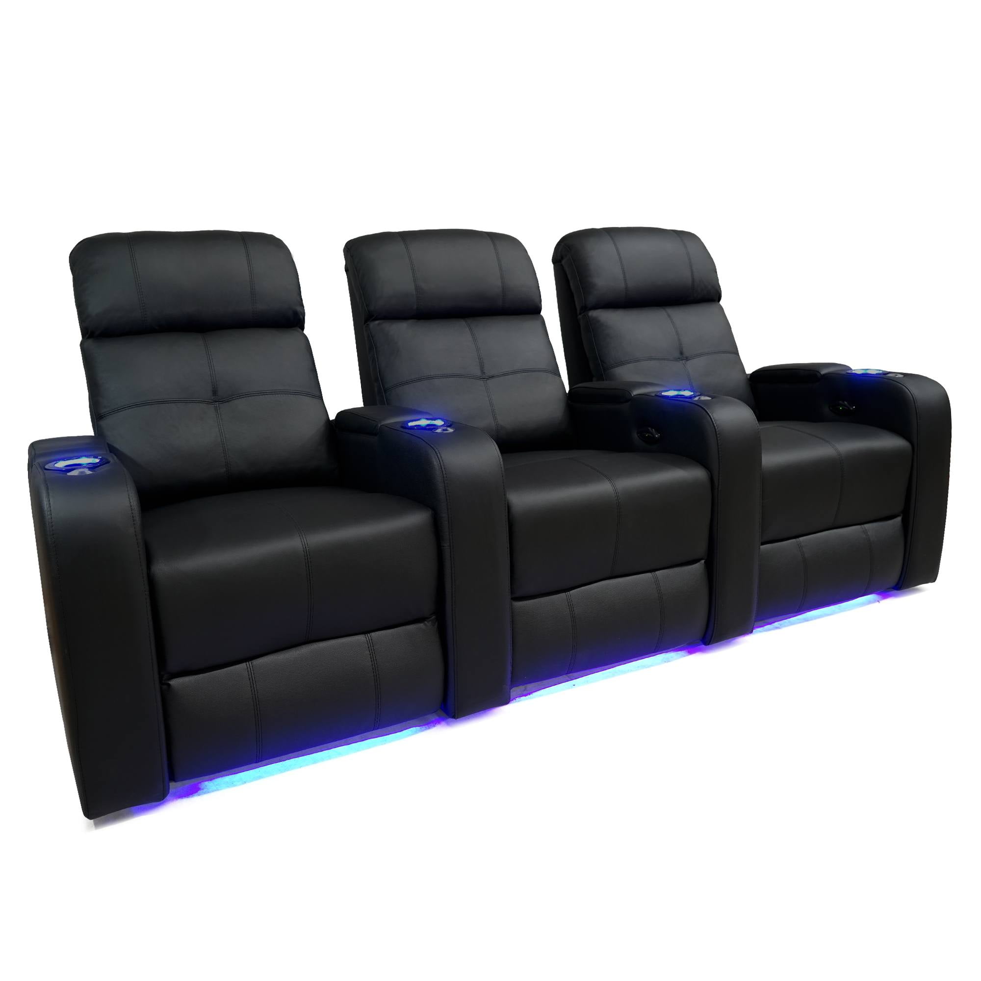 Valencia Verona Black Top Grain Leather Home Theatre Power Recliner 3 Seats Walmart Canada